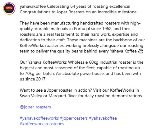 What clients are saying about our industrial coffee roasters and service.